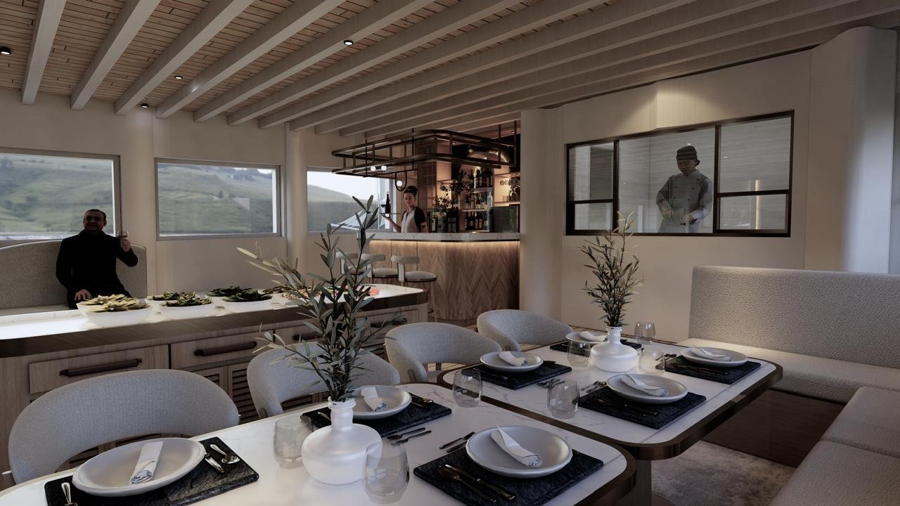 Step inside a Phinisi where handcrafted elegance meets modern comfort. Thoughtfully designed interiors blend rich Indonesian craftsmanship with refined finishes, creating a serene sanctuary at sea.